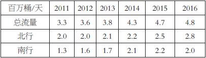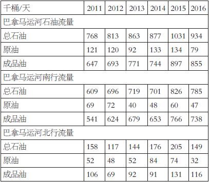 表為2011—2016年巴拿馬運河石油流量表為2011—2016年巴拿馬運河石油流量