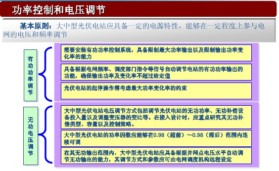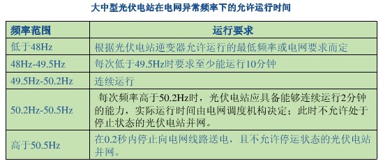 基本原則:大中型光伏電站應當做電源看待,應具備一定的耐受電網(wǎng)頻率和電壓異常的能力,能夠為保持電網(wǎng)穩定性提供支持。