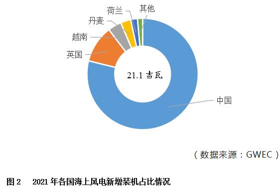從區域分布看,中國成為海上風(fēng)電累計裝機規模最大的國家。數據顯示,2021年,中國海上風(fēng)電新增裝機1690萬(wàn)千瓦,占全球新增海上風(fēng)電裝機的80%;累計裝機2777萬(wàn)千瓦,躍居世界第一。