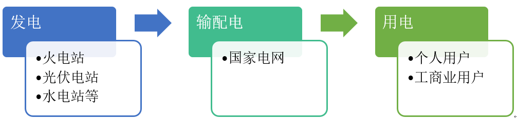 我國擁有一個(gè)龐大且復雜的電力系統,簡(jiǎn)單來(lái)說(shuō),這個(gè)系統主要由發(fā)電、輸配電、用電三個(gè)部分組成。在發(fā)電側,各類(lèi)電站首先將電力出售給國家電網(wǎng);在輸配電側,國家電網(wǎng)再將電力輸送、配送給終端的各類(lèi)用戶(hù)。