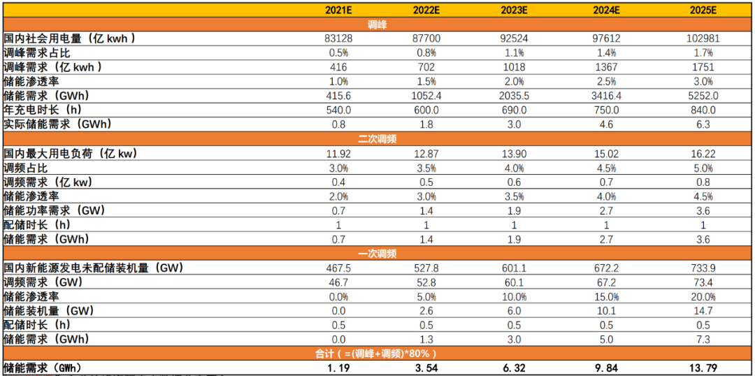 國內發(fā)電側儲能裝機量測算