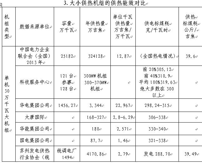 其他幾個(gè)公司的情況,請見(jiàn)后面的"大小供熱機組的供熱能效對比表"。