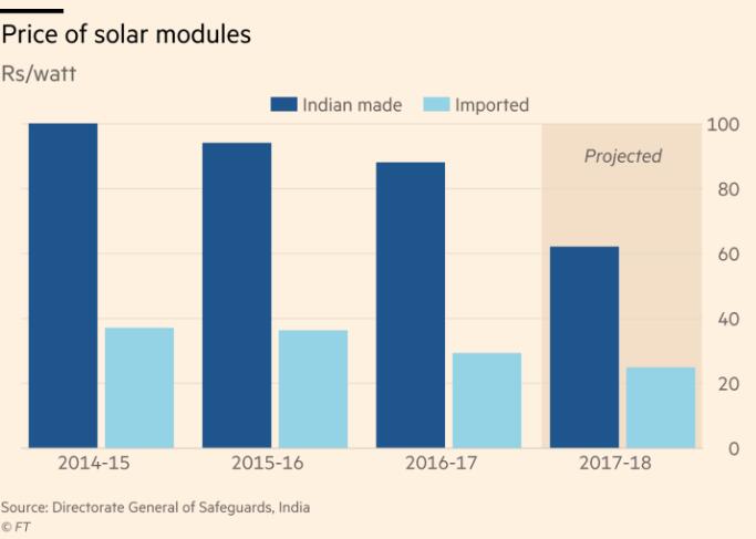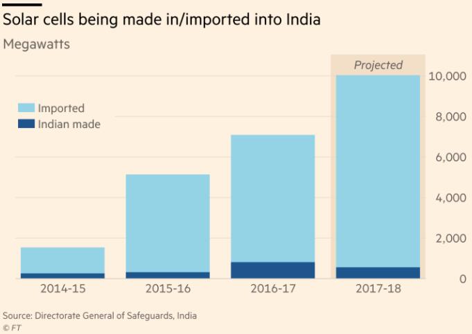 考慮到印度總理納倫德拉•莫迪(Narendra Modi)的政府制定的、到2022年時(shí)建成100吉瓦新增太陽(yáng)能發(fā)電能力的宏偉計劃,印度保障措施總局的方案顯得尤為敏感。