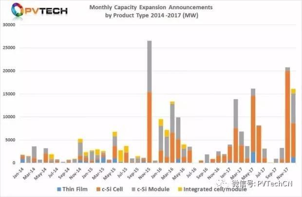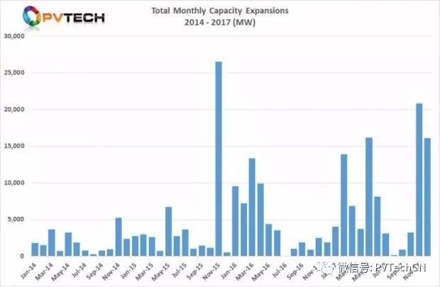 正如所強調的那樣,自2014年我們開(kāi)始發(fā)布這份分析報告以來(lái),2017年四季度位居此前所有多吉瓦級季度產(chǎn)能擴張公告之首。
