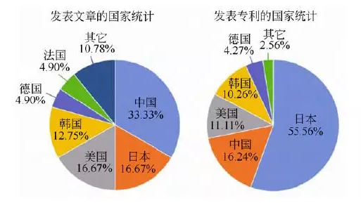 圖2. 2017 年不同國家發(fā)表的固體鋰電池文章及專(zhuān)利的數據統計