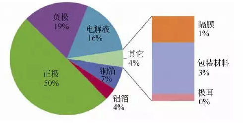 圖3. 液態(tài)電解質(zhì)鋰離子電池軟包電芯組成的質(zhì)量比