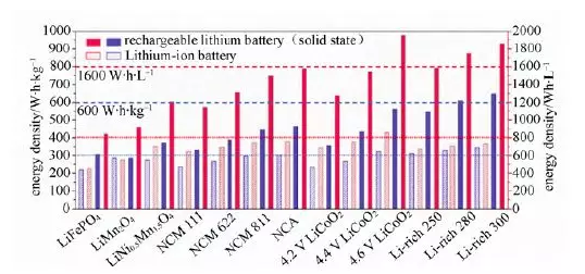 2) 可逆容量達到300 mA·h/g 的富鋰錳基鋰電池的體積能量密度也可以超過(guò)1850 W·h/L,質(zhì)量能量密度甚至高于600 W·h/kg;