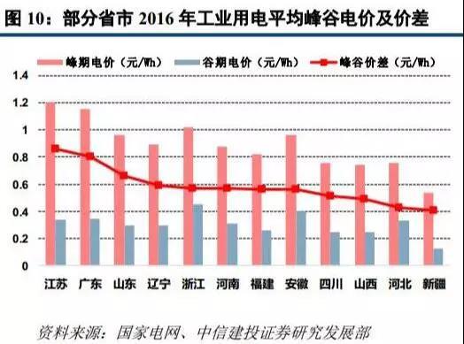 事實(shí)上,在政策之前,部分市場(chǎng)也具備了儲能的商業(yè)模式,如峰谷價(jià)差較多的城市。據不完全統計,全國34個(gè)省份中,共有16個(gè)省份發(fā)布了峰谷電價(jià)表,包括北京、上海、天津、河北、廣東、江蘇、浙江、山西等。據業(yè)內人士測算,若峰谷價(jià)差超過(guò)0.8元,儲能光伏電站的盈利模式可觀(guān),特別是用電量大的工商業(yè)企業(yè)。