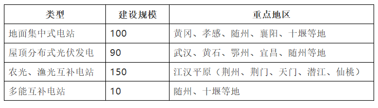表3:湖北省“十三五”太陽(yáng)能利用建設布局(單位:萬(wàn)kW)