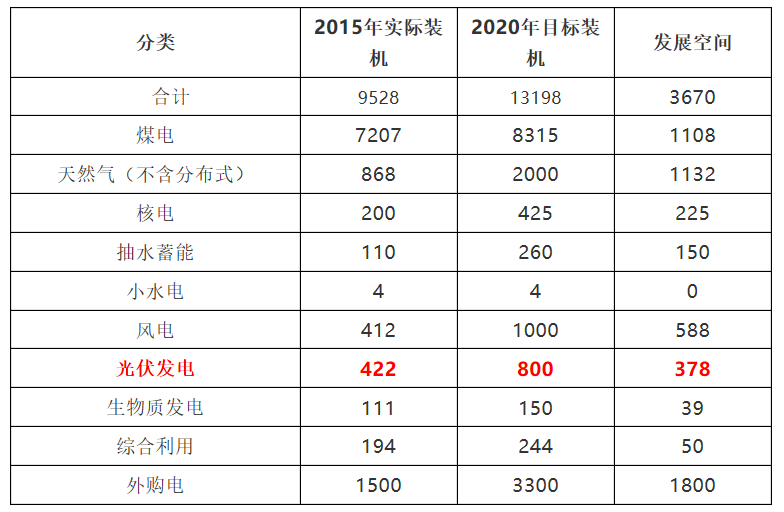 到2020年的總裝機容量目標為1500萬(wàn)kW,具體如下表所示。