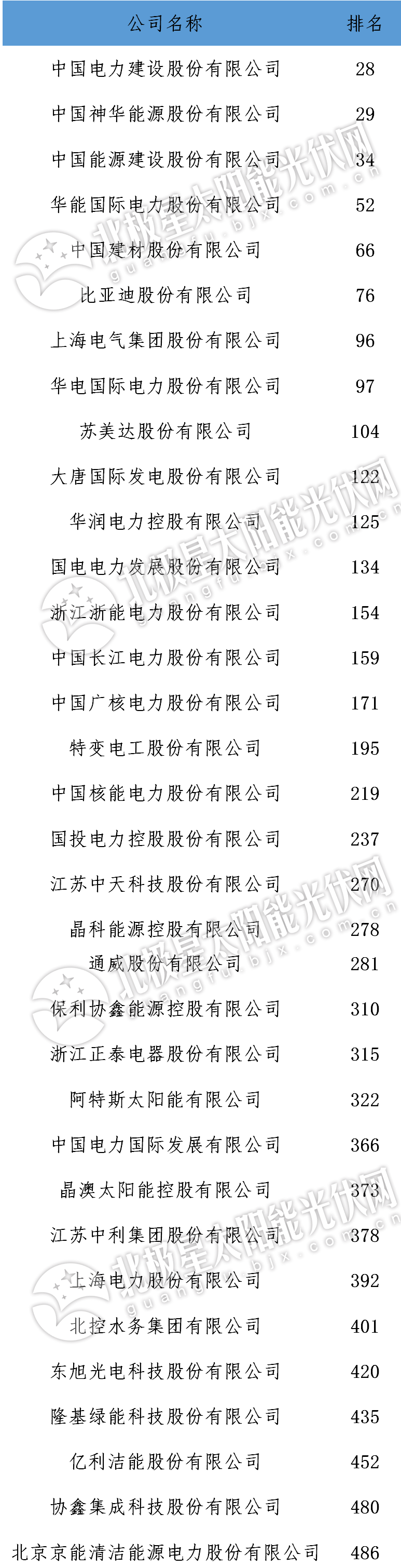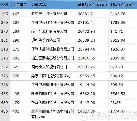 以光伏為主業(yè)的12家上榜企業(yè)