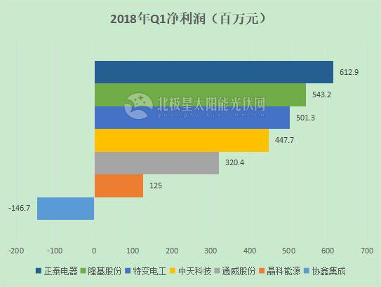 榜單反映了2017年的各企業(yè)的業(yè)績(jì)狀況。而2018年,各企業(yè)第一季度的財報已陸續發(fā)布,以上12家光伏企業(yè)中有7家發(fā)布Q1財報,營(yíng)收和凈利潤排行也發(fā)布些許變化。