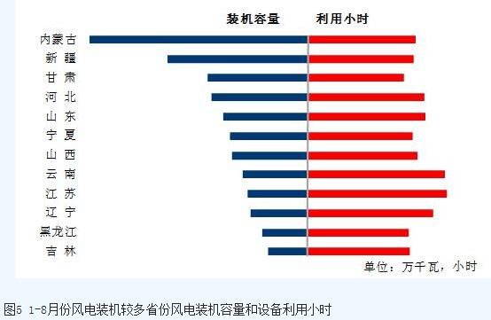 分類(lèi)型看,1-8月份,全國水電設備平均利用小時(shí)為2338小時(shí),比上年同期增加34小時(shí)。在水電裝機容量超過(guò)1000萬(wàn)千瓦的8個(gè)省份中,青海、廣西、湖北、云南和貴州同比分別增加907、298、240、180和134小時(shí),湖南、廣東和四川同比分別降低589、106和66小時(shí);全國火電設備平均利用小時(shí)為2939小時(shí)(其中,燃煤發(fā)電設備平均利用小時(shí)2950小時(shí)),比上年同期增加145小時(shí)。分省份看,全國共有12個(gè)省份火電設備利用小時(shí)超過(guò)全國平均水平,其中江西3529小時(shí),河北和安徽超過(guò)3400小時(shí),內蒙古、江蘇、陜西、山東、寧夏、福建、天津和海南超過(guò)3000小時(shí),云南和西藏分別僅為1271和218小時(shí)。與上年同期相比,全國共有25個(gè)省份火電利用小時(shí)數同比增加,其中,福建同比增加超過(guò)800小時(shí),增加843小時(shí),湖南、廣東、廣西和云南同比增加超過(guò)400小時(shí),分別增加508、476、473和448小時(shí),而青海、江蘇、寧夏、山東、新疆和陜西同比降低,其中青海、江蘇、寧夏、山東和新疆同比分別降低492、270、215、147和134小時(shí);全國核電設備平均利用小時(shí)4820小時(shí),比上年同期增加77小時(shí);全國并網(wǎng)風(fēng)電設備平均利用小時(shí)1412小時(shí),比上年同期增加167小時(shí);全國太陽(yáng)能發(fā)電設備平均利用小時(shí)851小時(shí)。