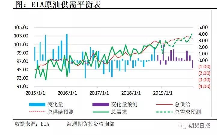 從EIA發(fā)布的原油供需平衡表來(lái)看,18年未來(lái)兩個(gè)月的原油市場(chǎng)將會(huì )維持供求平衡的狀態(tài),但是2019年的情況卻相當的悲觀(guān),在頁(yè)巖油的增長(cháng)帶動(dòng)下,全年都會(huì )維持供大于求的狀態(tài)。