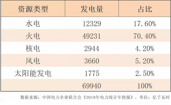 目前,我國風(fēng)電、光伏在電力結構中仍只占據較小的比重。2018年,全國風(fēng)電、光伏發(fā)電量分別為3660億千瓦時(shí)、1775億千瓦時(shí),占據全部發(fā)電量的5.2%、2.5%。