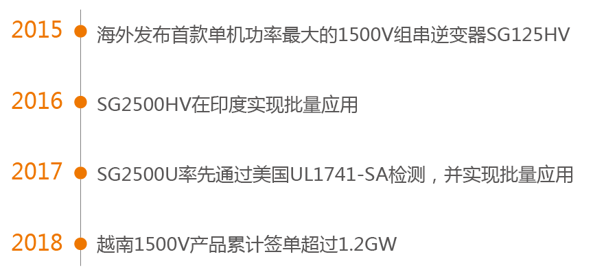 相較于國內,國外如歐洲、北美、印度等光伏市場(chǎng),在1500V技術(shù)研究及市場(chǎng)應用上更加成熟。陽(yáng)光電源積極實(shí)施“走出去”戰略,針對不同國家和地區市場(chǎng)準入標準分別開(kāi)展針對性的技術(shù)創(chuàng )新和研發(fā)活動(dòng),不斷推出符合市場(chǎng)準入要求的高性能產(chǎn)品和服務(wù)。目前陽(yáng)光電源“1500V+大方陣+高超配”先進(jìn)系統解決方案,應用足跡已遍布歐洲、美國、印度、越南等多個(gè)市場(chǎng),成為全球光伏市場(chǎng)降本增效的首選。