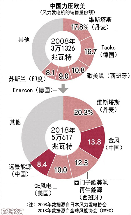 文章稱(chēng),在上海一座辦公大樓的一角,全球排名第5的中國風(fēng)力發(fā)電機廠(chǎng)商遠景能源的幾十名操作員監控著(zhù)1億千瓦的可再生能源設施,這相當于整個(gè)日本的規模。