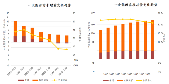 究其原因,是因為2035年前,產(chǎn)業(yè)結構優(yōu)化和技術(shù)進(jìn)步是能源強度下降的主要因素;2035年后,技術(shù)進(jìn)步成為能源強度下降的首要因素。此外,我們國家進(jìn)入了工業(yè)化后期,城鎮化穩步推進(jìn),能源需求由生產(chǎn)側轉向消費側,工業(yè)用能占比將持續回落,也讓能源整體消費需求出現了峰值后回落的情況。