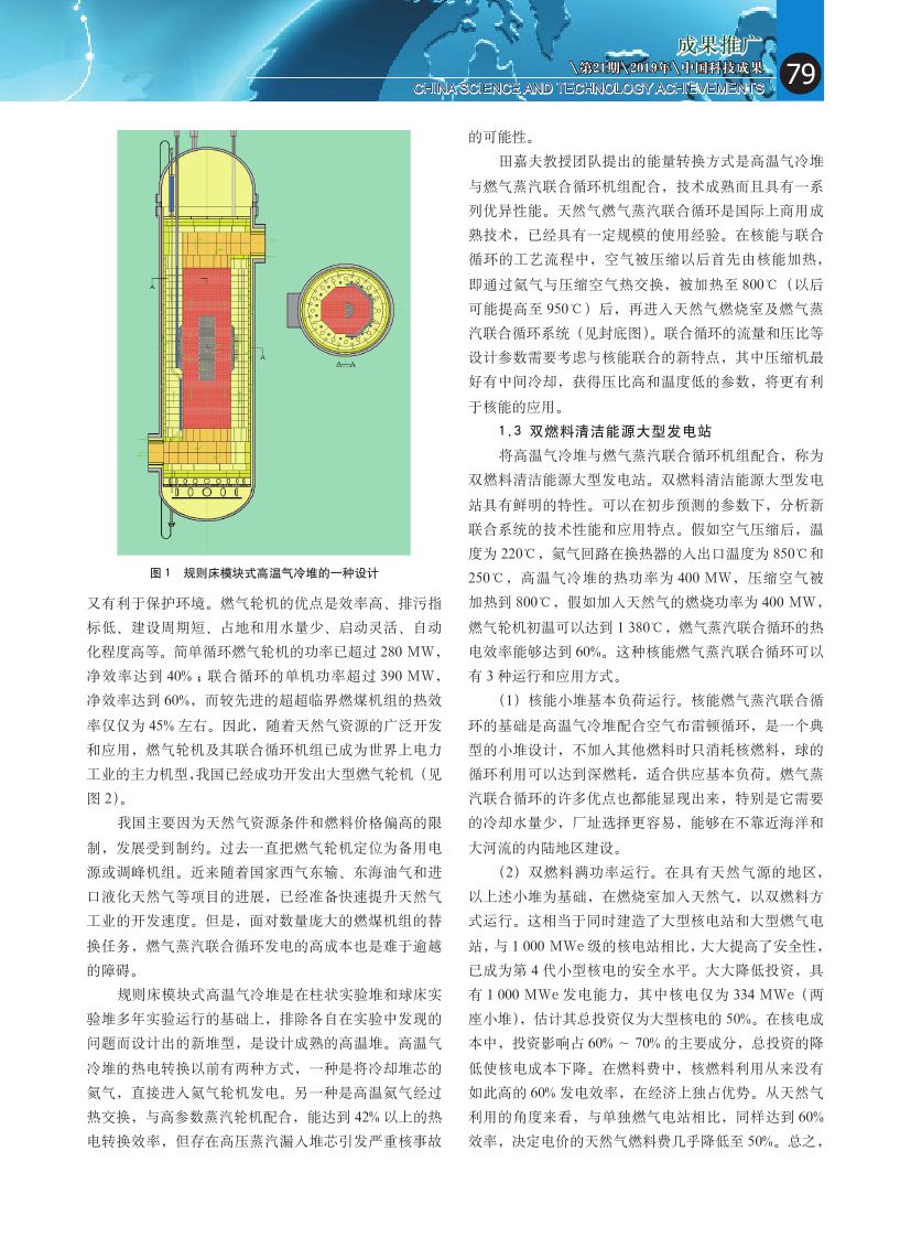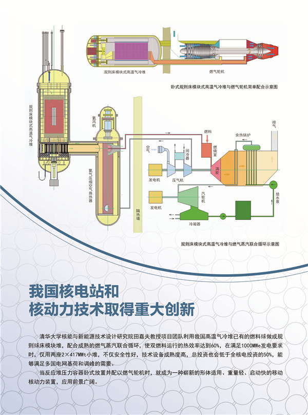清華大學(xué)核能與新能源技術(shù)設計研究院田嘉夫教授項目團隊利用我國高溫氣冷堆已有的燃料球做成規則球床模塊堆,配合成熟的燃氣蒸汽聯(lián)合循環(huán),使雙燃料運行的熱效率達到60%,在滿(mǎn)足1000MWe發(fā)電要求時(shí),僅用兩座2×417MWt小堆,不僅安全性好,技術(shù)設備成熟度高,總投資也會(huì )低于全核電投資的50%,能夠滿(mǎn)足多國電網(wǎng)基荷和調峰的需要。