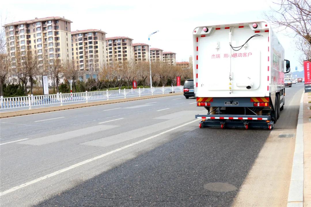 針對城市路面保潔和空氣質(zhì)量改善的痛點(diǎn),杰瑞研發(fā)制造了擁有自主知識產(chǎn)權的深度清潔車(chē)。它顛覆了以往路面清潔車(chē)輛的作業(yè)方式,通過(guò)高壓水旋轉清掃,能徹底清理路面頑固污漬。沖刷后產(chǎn)生的污水和雜質(zhì),通過(guò)高負壓真空抽吸設備全部抽至密閉的罐體里,不會(huì )對城市環(huán)境造成二次污染。相比傳統清潔車(chē),杰瑞深度清潔車(chē)集沖刷、清掃、除塵功能于一體,路面清潔率達到99.5%,節水率達到80%,很好地滿(mǎn)足了城市高標準保潔的要求。