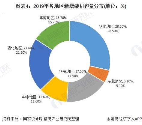 地區分布看,華北地區新增裝機858萬(wàn)千瓦,同比下降24.0%,占全國的28.5%;東北地區新增裝機153萬(wàn)千瓦,同比下降60.3%,占全國的5.1%;華東地區新增裝機531萬(wàn)千瓦,同比下降50.1%,占全國的17.5%;華中地區新增裝機348萬(wàn)千瓦,同比下降47.6%,占全國的11.6%;西北地區新增裝機649萬(wàn)千瓦,同比下降1.7%,占全國的21.6%;華南地區新增裝機472萬(wàn)千瓦,同比下降5.1%,占全國的15.7%。