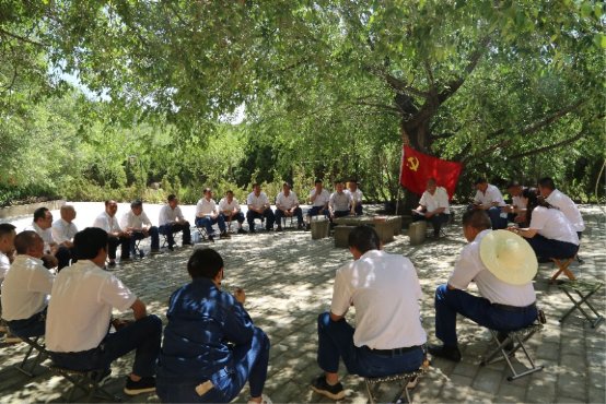 活動(dòng)中,一行人先后來(lái)到陜甘邊區軍委、蘇維埃政府舊址,參觀(guān)舊址窯洞陳列,來(lái)到革命先輩們工作、生活的場(chǎng)景中進(jìn)行體驗、感受。黨員同志們或駐足發(fā)問(wèn)或相互討論,氣氛相當熱烈。在蘇維埃政府舊址院內,全體黨員面對黨旗,重溫入黨誓詞。在體驗式教育參觀(guān)結束后,與會(huì )黨員圍坐在蘇維埃政府舊址院內的大樹(shù)下,黨員方勇同志向大家分享了爺爺方世祿老紅軍的南梁故事,劉汀同志講述革命先驅劉志丹的英勇故事,激發(fā)了大家對那段崢嶸歲月里革命者的無(wú)限崇敬。接著(zhù),黨員楊虎誠誦讀了《習近平七年知青歲月》部分章節,積極分子董旭軍誦讀了《鄧穎超自述》部分章節。最后,大家合唱起改編自華池民歌《推炒面》的《軍民大生產(chǎn)》,唱起了讓無(wú)數人淚目的《我和我的祖國》,在嘹亮的歌聲中此次活動(dòng)圓滿(mǎn)結束。