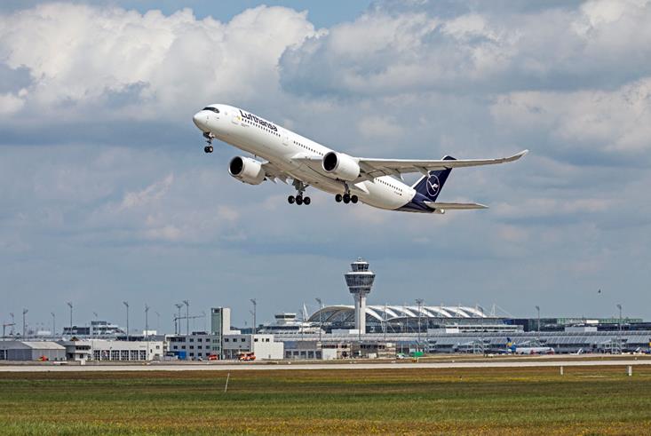 Takeoff of a Lufthansa Airbus A350-900