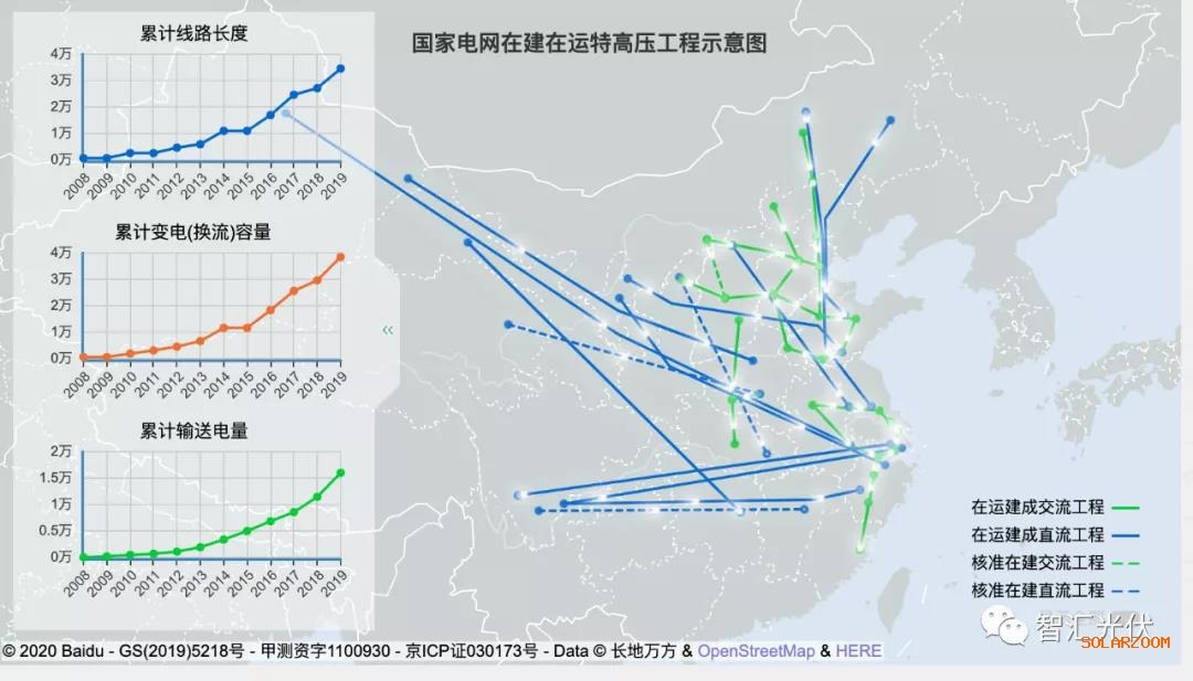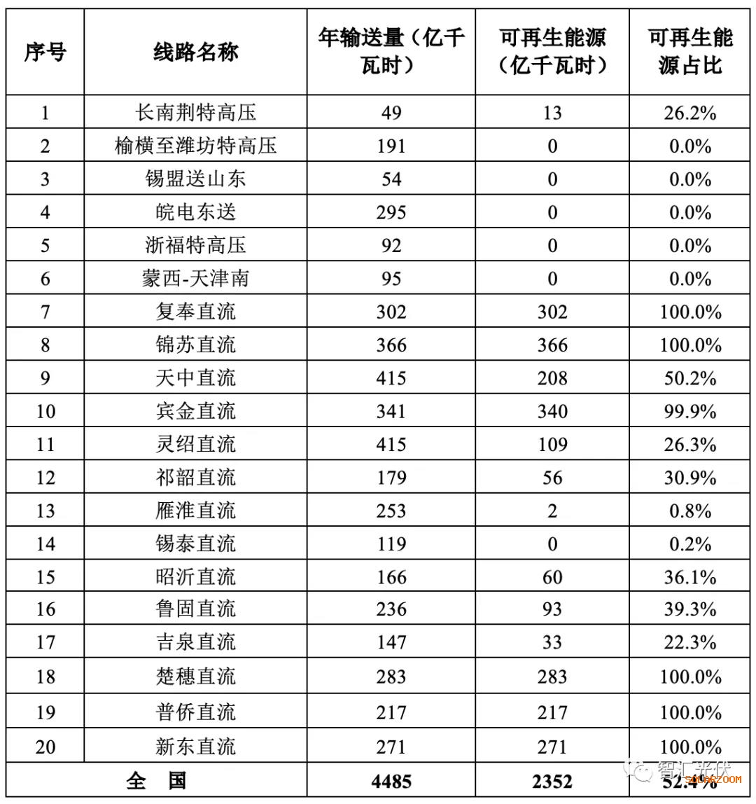 2019年,20條特高壓線(xiàn)路年輸送電量4485億千瓦時(shí),其中可再生能源電量2352億千瓦時(shí),同比提高12.8%,可再生能源電量占全部輸送電量的52.4%。