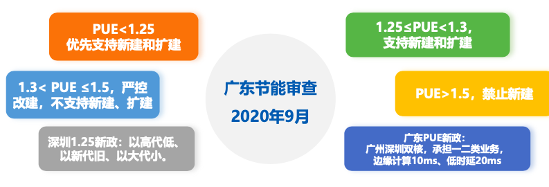 2013年,工信部提出新建大型數據中心PUE不超過(guò)1.5;2018年,北京提出PUE不超過(guò)1.4,繼而上海要求新建數據中心的PUE不超過(guò)1.3;2019年,深圳更是率先提出PUE低于1.25。