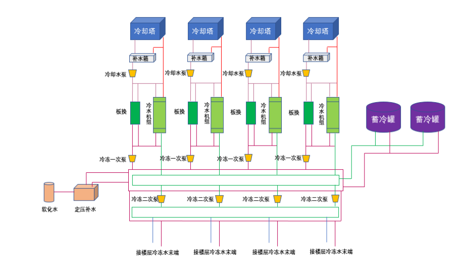 在我國大量的運營(yíng)商和第三方數據中心里,冷卻塔+板換+冷水機組的水系統架構非常流行,這種架構雖然比較復雜,對建設過(guò)程要求較高,但對建筑形式要求較低,不受溫度和濕度影響,關(guān)鍵是非常成熟,國內的大多數設計院很喜歡出這種方案。