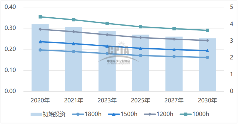 2020-2030年光伏地面電站不同等效利用小時(shí)數LCOE估算(元/kWh)