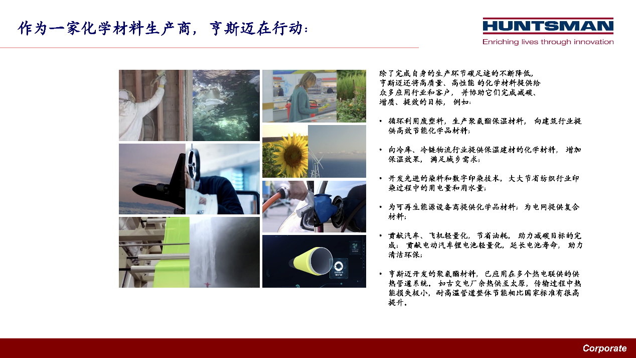 深耕能源化工行業(yè)數十載的程紅女士重點(diǎn)分析了化工與化學(xué)品行業(yè)將如何深度介入潛在的中國碳減排路徑,她從行業(yè)和企業(yè)的雙重角度闡述了“雙碳目標“給化工行業(yè)帶來(lái)的綠色發(fā)展契機,以及化工企業(yè)在生產(chǎn)端和消費端持續參與中國碳達峰和碳中和進(jìn)程的重要性。以亨斯邁集團為例,她列舉了不同業(yè)務(wù)部門(mén)的化學(xué)品在賦能客戶(hù)實(shí)現可持續發(fā)展、降低碳足跡方面的產(chǎn)品應用。她認為,在節能、降耗、減碳的潛力和硬性任務(wù)之外,化工行業(yè)可以向直面消費端的工業(yè)、建筑及交通運輸等領(lǐng)域提供化學(xué)材料解決方案助力其實(shí)現節能減碳。在談到中國碳減排的關(guān)鍵時(shí),她說(shuō):“目前,過(guò)度使用化石能源而造成的二氧化碳過(guò)度排放是全球氣候變化的焦點(diǎn)問(wèn)題。而在中國,這個(gè)問(wèn)題主要集中在煤炭在發(fā)電、供熱和工業(yè)領(lǐng)域的過(guò)度使用。我們很高興看到國家已提出大力發(fā)展可再生能源、不斷深化電力體制改革,構建以新能源為主體的新型電力系統。“演講中,程紅女士也表達了化工行業(yè)和本企業(yè)對未來(lái)中國碳達峰和碳中和配套政策的期待。