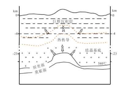 沉積盆地型干熱巖成因模式圖