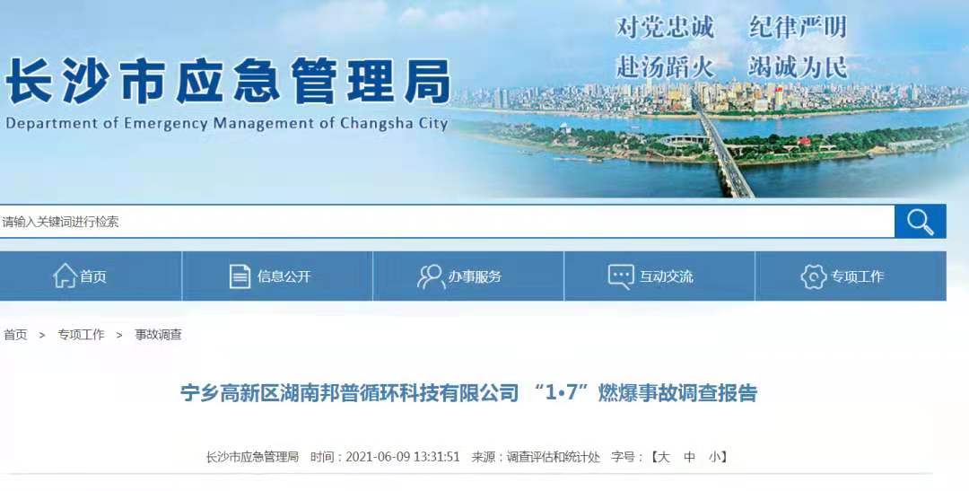 6月9日,長(cháng)沙市應急管理局對外公布《寧鄉高新區湖南邦普循環(huán)科技有限公司 “1·7”燃爆事故調查報告》,公布了這起事故的調查結果。