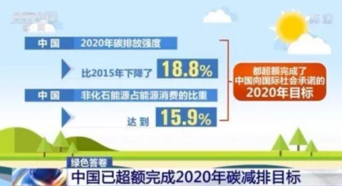 近日,根據生態(tài)環(huán)境部發(fā)布的消息稱(chēng),中國2020年碳排放強度比2015年下降了18.8%,超額完成了“十三五”約束性目標,而我國非化石能源占能源消費的比重達到15.9%,都超額完成了中國向國際社會(huì )承諾的2020年目標。