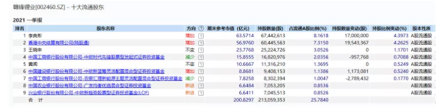 在贛鋒鋰業(yè)上漲期間,機構投資者獲利豐厚。從2021年一季報公司披露的前十大流通股中可以看到,多位明星基金經(jīng)理赫然在列,包括中歐基金的代表人物周蔚文、周應波,農銀匯理的2020年度業(yè)績(jì)冠軍趙詣,可謂眾星云集。