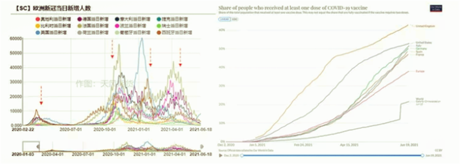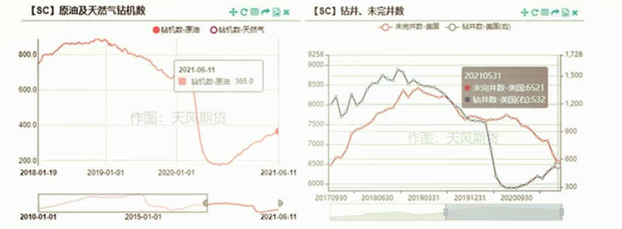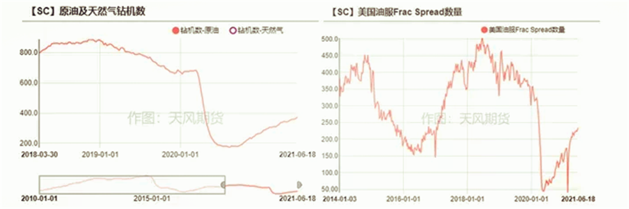 而到了今年上半年,歐洲的第三輪疫情、以及印度的失控也再次后置需求回歸的時(shí)間,但與去年不同的是,疫苗的接種率在不斷加快。截至6月中旬,美國單劑接種率已經(jīng)超過(guò)50%,歐洲的單劑接種率已經(jīng)接近40%,其中Eur-5的接種率也到了五成左右。在需求前景較為明朗的情況下,頁(yè)巖油商增產(chǎn)的意愿或有所提高。