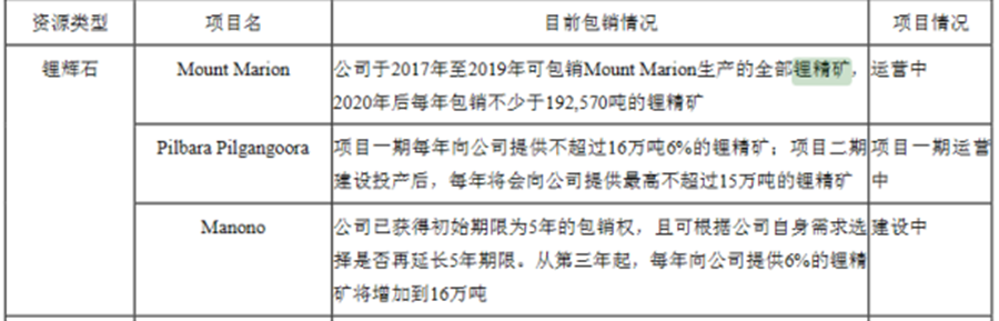 當然,除了鋰鹽湖,鋰礦也是角逐的對象。天齊官方數據顯示,目前擁有鋰精礦年產(chǎn)能134萬(wàn)噸,規劃年產(chǎn)能194萬(wàn)噸;贛鋒鋰業(yè)目前包銷(xiāo)MountMarion項目19.25萬(wàn)噸/年鋰精礦;包銷(xiāo)Pilgangoora項目1期、2期共計31萬(wàn)噸/年鋰精礦;包銷(xiāo)Manono項目16萬(wàn)噸/年鋰精礦,具體如下表所示: