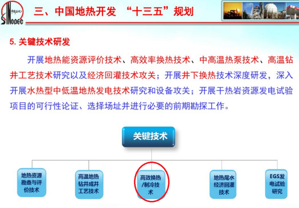 普泛能源的核心技術(shù)--低溫熱驅動(dòng)多元復合工質(zhì)制冷(<0℃)技術(shù),秉承“以最短路徑實(shí)現能源高效轉化”的科學(xué)理念,利用100℃-140℃低溫熱源(包括工業(yè)生產(chǎn)過(guò)程中低溫余熱的回收利用、地熱能和生物質(zhì)熱能等)驅動(dòng)制取溫度可達-40℃的冷能(制冷制冰),各項性能指標均先進(jìn)于國內外同類(lèi)技術(shù)。這種低溫熱驅動(dòng)吸收式制冷技術(shù),屬于非電制冷技術(shù),在一定范圍內可取代電驅動(dòng)壓縮式制冷系統,在同樣制冷量下節電率高達90%左右,在廢余熱利用基礎上用電能效提升10倍以上,可大幅度減少二氧化碳排放。經(jīng)過(guò)國家節能中心專(zhuān)家組評審、中國化工信息中心有限公司“科技查新”、中國石油與化學(xué)聯(lián)合會(huì )專(zhuān)家鑒定委員會(huì )科技成果鑒定,主要結論:“技術(shù)優(yōu)勢明顯、節能效果顯著(zhù)、符合國家產(chǎn)業(yè)政策”;“具有唯一性、新穎性、創(chuàng )新性和領(lǐng)先性”;“該成果原創(chuàng )性強,具有完全自主知識產(chǎn)權,核心技術(shù)和裝備達到國際領(lǐng)先水平”。2020年11月榮獲第二十四屆全國發(fā)明展覽會(huì )“發(fā)明金獎”。中國地熱開(kāi)發(fā)“十三五”規劃,提出了五大關(guān)鍵技術(shù)課題:地熱資源勘查與評價(jià)技術(shù)、高溫地熱鉆井成井工藝技術(shù)、高效換熱/制冷技術(shù)、地熱尾水經(jīng)濟回灌技術(shù)、EGS發(fā)電試驗研究。