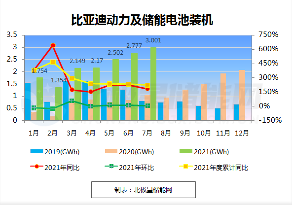 8月5日晚,比亞迪發(fā)布7月銷(xiāo)量快報公告,2021年7月比亞迪新能源汽車(chē)銷(xiāo)量50492輛,本年累計為20.51萬(wàn)輛,累計同比增長(cháng)170.62%。7月比亞迪新能源汽車(chē)動(dòng)力電池及儲能電池裝機總量約為3.001GWh,本年累計裝機總量約為15.708GWh。