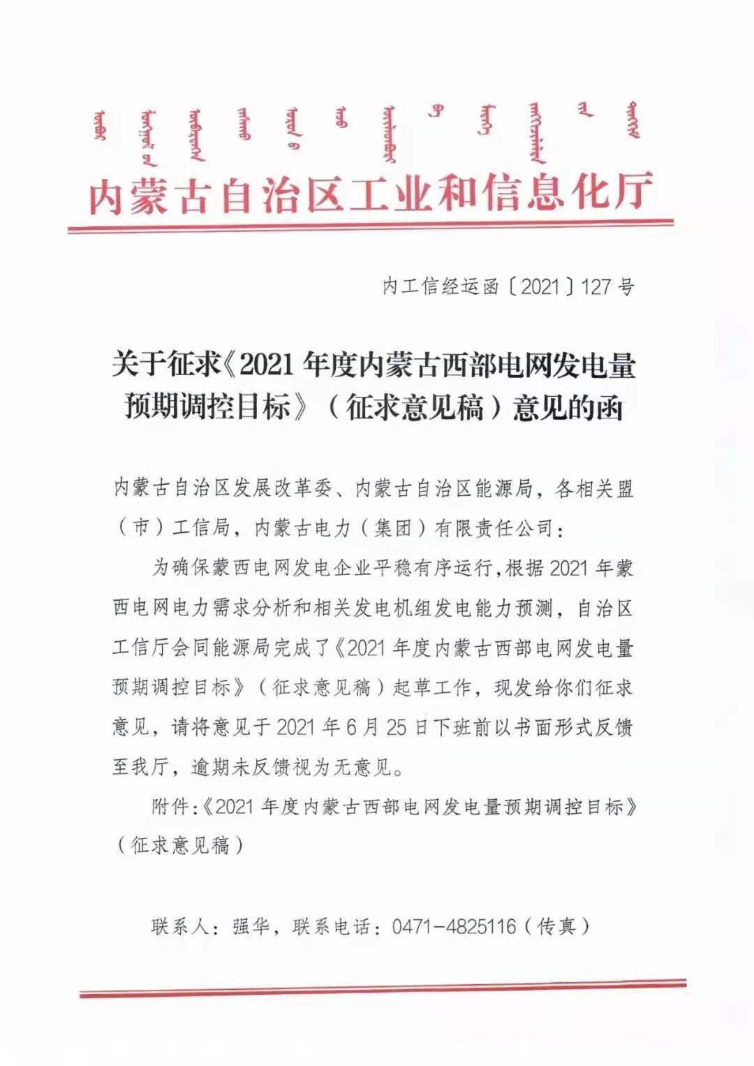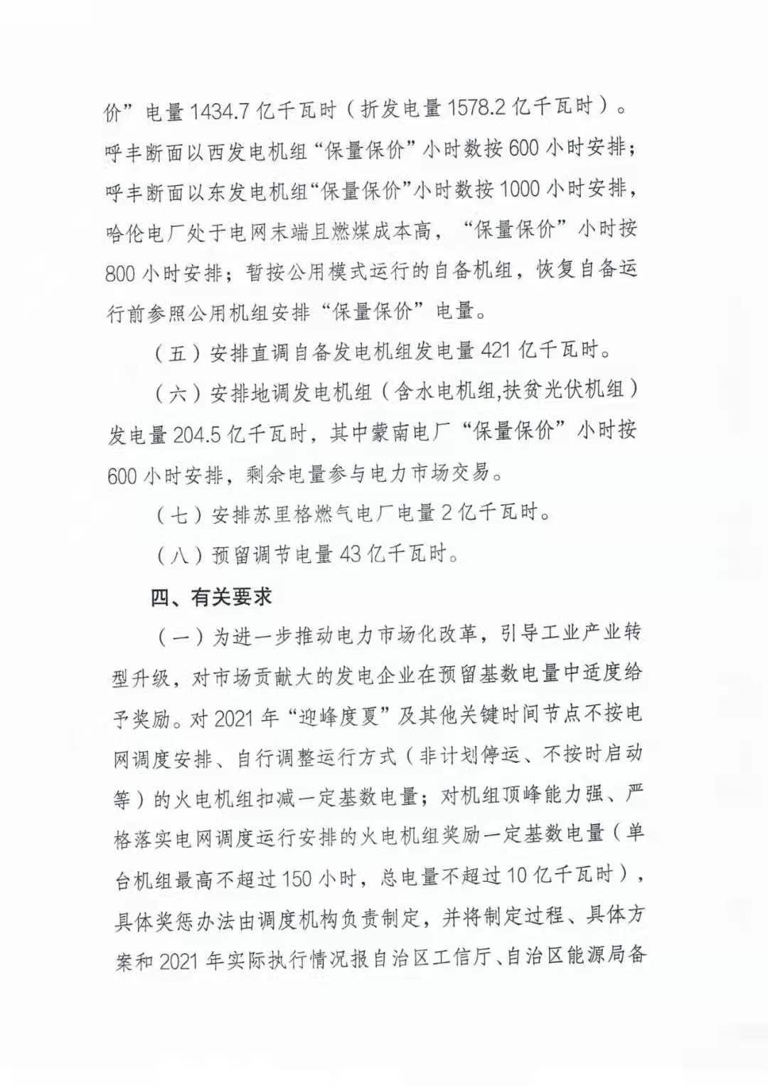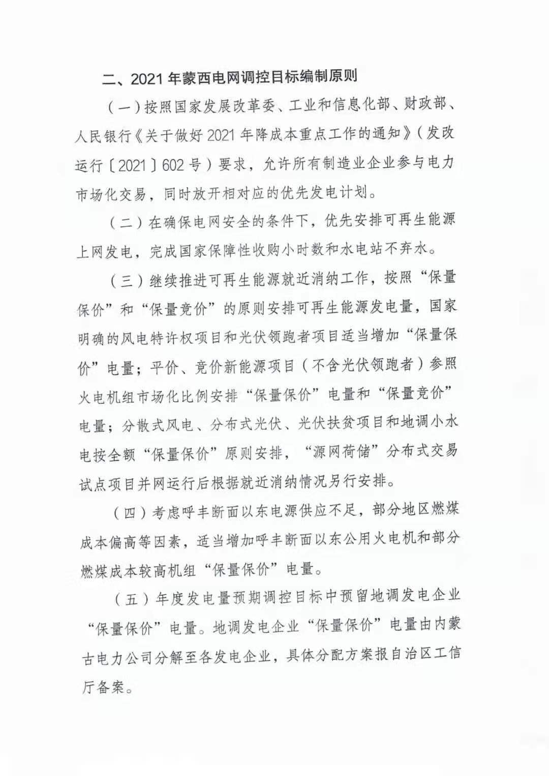 近日,內蒙古自治區工信廳會(huì )同能源局印發(fā)《2021年度內蒙古西部電網(wǎng)發(fā)電量預期調控目標》(征求意見(jiàn)稿),擬對蒙西發(fā)電機組按照“保量保價(jià)”與“保量競價(jià)”兩種方式進(jìn)行發(fā)電調控,優(yōu)先安排可再生能源上網(wǎng)發(fā)電。