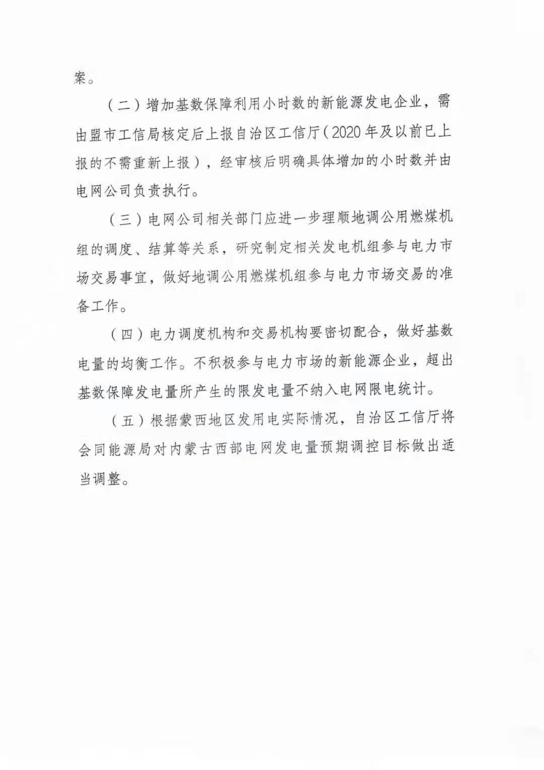 文件還強調,增加基數保障利用小時(shí)數的新能源發(fā)電企業(yè),需由盟市工信局核定后上報自治區工信廳(2020年及以前已上報的不需重新上報),經(jīng)審核后明確具體增加的小時(shí)數并由電網(wǎng)公司負責執行。不積極參與電力市場(chǎng)的新能源企業(yè),超出基數保障發(fā)電量所產(chǎn)生的限發(fā)電量不納入電網(wǎng)限電統計。