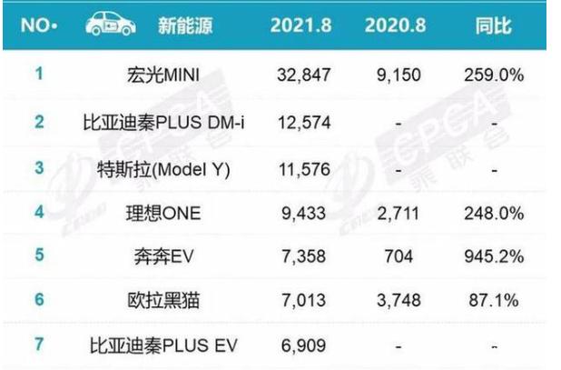 8月份國內新能源汽車(chē)銷(xiāo)量排名數據顯示,熱銷(xiāo)第一名、第二名分別是宏光miniEV、比亞迪秦plus DM-i,而特斯拉model Y僅位居第三名,曾經(jīng)位列國內熱銷(xiāo)新能源汽車(chē)榜首的model3已在TOP15中消失。