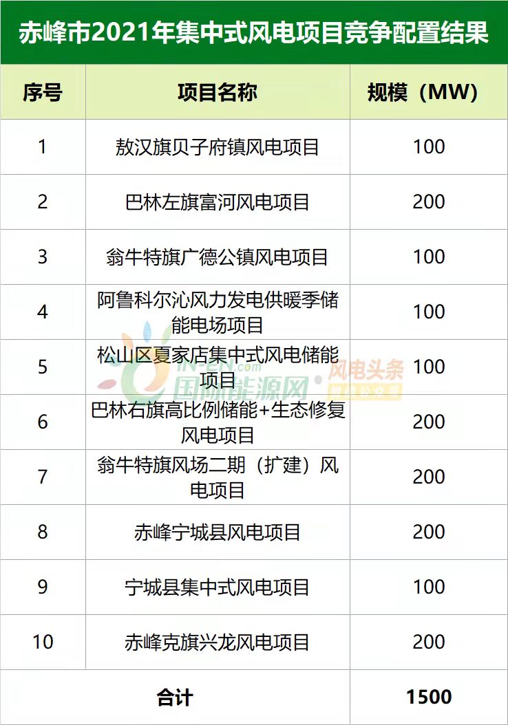 9月17日,內蒙古赤峰市公布2021年集中式風(fēng)電、集中式光伏發(fā)電項目競爭配置優(yōu)選結果,擬向內蒙古自治區能源局申報的集中式風(fēng)電項目10個(gè)、總規模1.5GW,集中式光伏發(fā)電項目5個(gè)、總規模500MW。