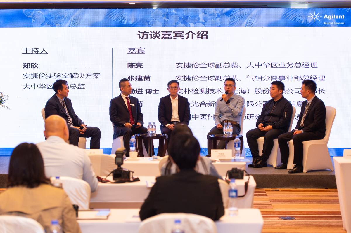 安捷倫實(shí)驗室解決方案大中華區市場(chǎng)總監鄭欣,安捷倫全球副總裁、大中華區業(yè)務(wù)總經(jīng)理陳亮,實(shí)樸檢測技術(shù)(上海)股份有限公司董事長(cháng)楊進(jìn)博士,北京光合新能科技有限公司首席信息官王萌,中國中醫科學(xué)院中藥研究所副研究員孫偉,安捷倫全球副總裁、氣相分離事業(yè)部總經(jīng)理張建苗
