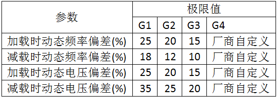 在孤島運行模式下,燃氣發(fā)電機組沒(méi)有電網(wǎng)的支撐,完全由自身提供負荷所需電能。發(fā)電機組的帶載性能決定了所能承載的負荷大小以及波動(dòng)。ISO8528-5規定了G1-G4四個(gè)類(lèi)別,分別對應不同的負荷種類(lèi)和級別。發(fā)電機組廠(chǎng)商根據ISO8528-5的定義,給出了機組在相應的等級下最大能承受的負荷情況。