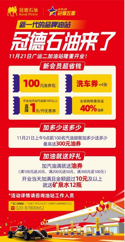 活動(dòng)期間,車(chē)主們只需按要求注冊新會(huì )員就可免費得到100元油券包、4張免費洗車(chē)券跟每升直降1元優(yōu)惠券,實(shí)打實(shí)的福利;并且,開(kāi)業(yè)當天前100位會(huì )員加多少送多少,最高送300元油券;此外,冠德石油還開(kāi)展加油就送好禮活動(dòng),門(mén)檻超低,開(kāi)業(yè)當天加油只要滿(mǎn)10元就送12瓶礦泉水,加汽油滿(mǎn)一定金額就送油券,最高滿(mǎn)300元送100元油券,鉅惠之大,造就了一場(chǎng)車(chē)主們的加油狂歡。