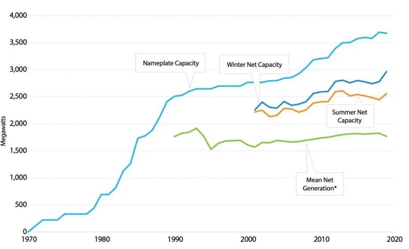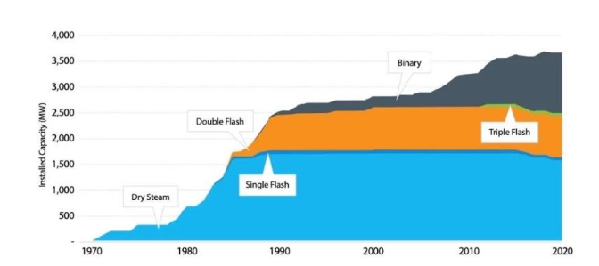 目前美國共有93個(gè)地熱發(fā)電站,總裝機容量為3673MW。近年來(lái),美國地熱發(fā)電裝機量增長(cháng)緩慢,根據統計,從2015年至2019年期間,美國新增了7個(gè)地熱發(fā)電站,總裝機容量186MW,但同期11個(gè)地熱電站退役,總裝機容量103MW。