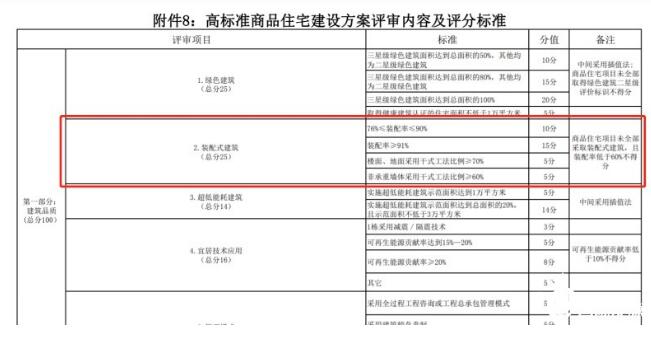 北京在集中供地競拍中設置了競高標準商品住宅建設方案環(huán)節,規定裝配率越高將獲得更高分數。而今年首批集中供地的8個(gè)高標準商品住宅建設方案顯示,有7個(gè)項目承諾了裝配式建筑裝配率在76%以上,涉及融創(chuàng )、北京城建、住總、綠城等多家房企。