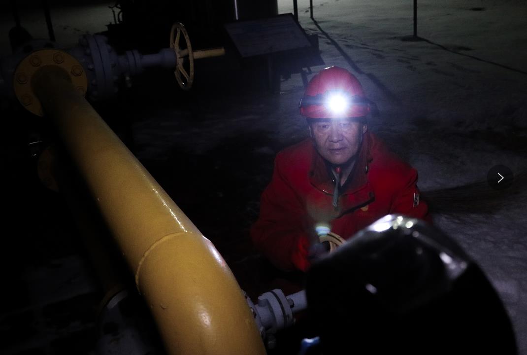 圖為:1月25日晚采油四廠(chǎng)廊東采油作業(yè)區員工宋建輝查看氣井壓力,確保該井雨雪天氣過(guò)后油氣平穩生產(chǎn)。(宋常青 錢(qián)瑋瑋)